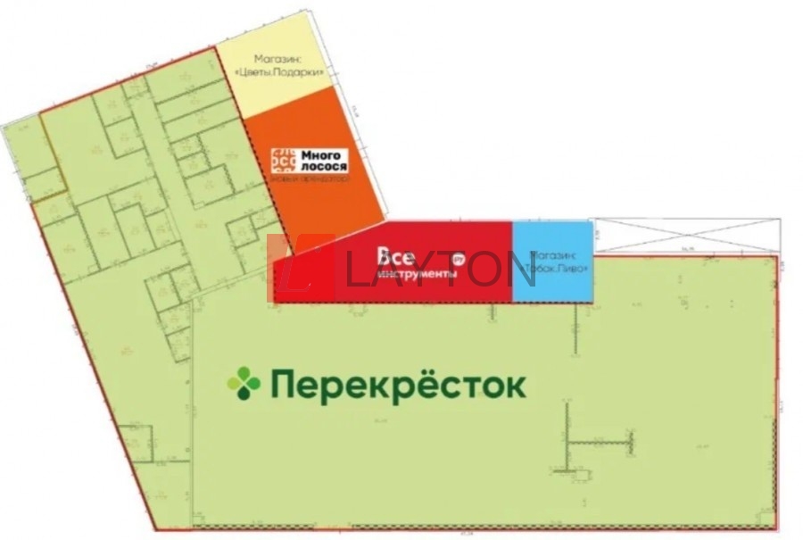 • супермаркет "Перекрёсток", "Все инструменты", аптека "Ригла", Цветы, Табак, Аксессуары.