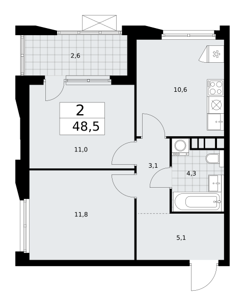 Продаются 2-к апартаменты площадью 46.61 кв.м. на 8-м этаже 20 этажного дома в ЭВОПАРК Сокольники от ГК ОСНОВА.