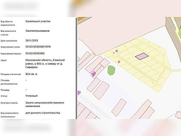 В рамках процедуры банкротства реализуется земельный участок по адресу: Московская область, Клинский район, в 900 м. к северу от д. ГафидовоКадастровый номер 50: 03: 0030380: 1019Площадь участка 804 кв. мКатегория земель Земли сельскохозяйственного назначенияВид разрешенного использования для дачного строительства