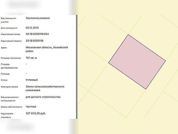Имущество реализуется путем проведения торгов в форме аукциона в соответствии с Федеральным законом "О несостоятельности (банкротстве) " от 26.10.2002 №127-ФЗ. Земельный участок: кадастровый номер 50: 18: 0050116: 654, площадь 701 кв. мКатегория земель: Земли сельскохозяйственного назначенияВид разрешенного использования: Для дачного строительства