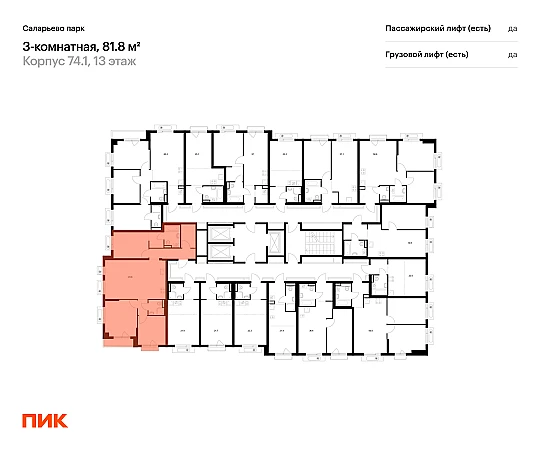 Продаётся 3-комн.квартира площадью 81.80 кв.м на 13 этаже 18 этажного дома (Корпус 74.1, секция 1) проекта ПИК Саларьево парк. Светлый просторный подъезд на уровне земли, функциональная планировка, большие окна, с отделкой.