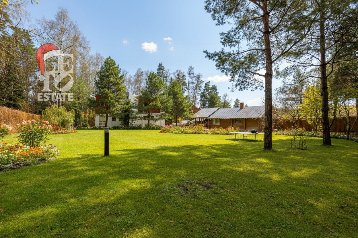 На участке построена баня с дубовой бочкой, кухней с зоной отдыха и санузлом. Дополнительно сделан гараж для машины, на втором этаже спальня, кухня, санузел для персонала. На придомовой территории навес для трех автомобилей.