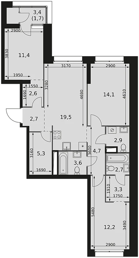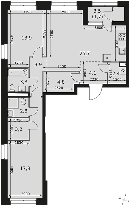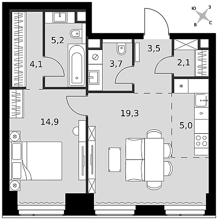 Продается двухкомнатная квартира (евротрешка) в новостройке бизнес-класса.