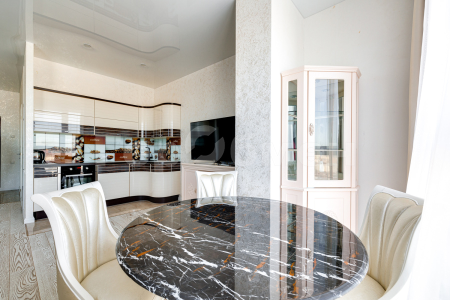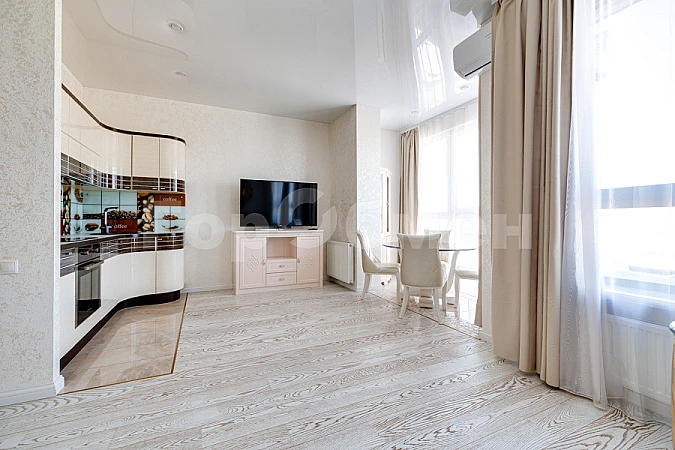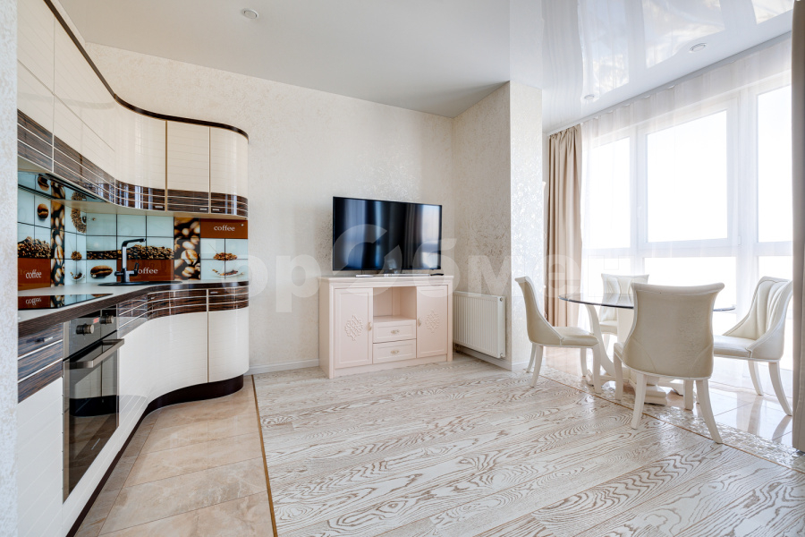 Квартира полностью меблирована и укомплектована всей необходимой техникой для комфортного проживания: встроенная кухня, электрическая плита Kuppersberg, духовой шкаф Kuppersberg, smart TV, холодильник Samsung , стиральная машина Samsung, пылесос,утюг, посуда, посудомоечная машина.