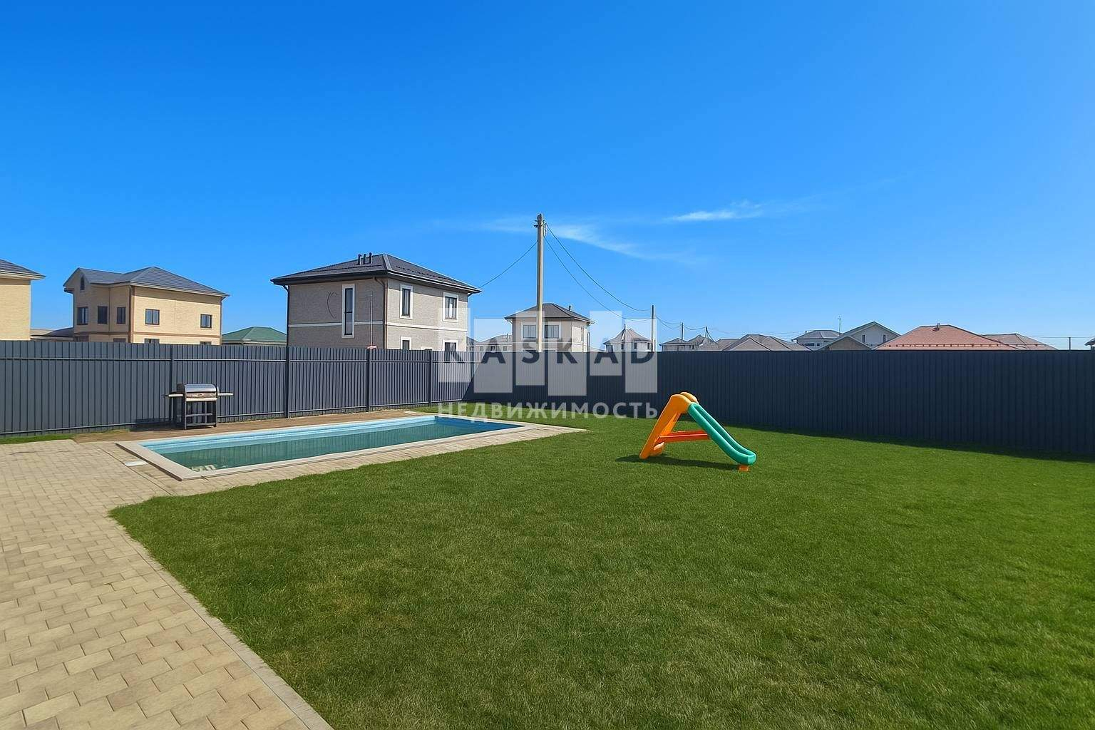 Коттедж построен на участке ровной формы, имеется открытый бассейн, гараж со входом в дом, подведены все коммуникации, выполнен качественный ремонт.