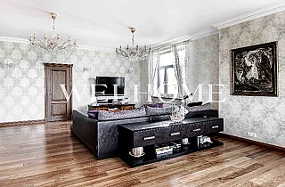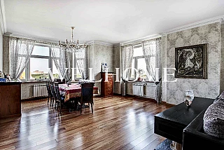 Предлагается просторная двухуровневая квартира с камином на Патриарших Прудах. Ремонт выполнен в классическом стиле, с использованием дорогостоящих материалов, установлены кондиционеры. Функциональная планировка: гостиная со столом для игры в бильярд и домашним кинотеатром, кухня, три спальни, кабинет, три санузла, сауна, гардеробные комнаты. Окна выходят во двор. Парковка на охраняемой территории. Более пяти лет в собственности, свободная продажа.