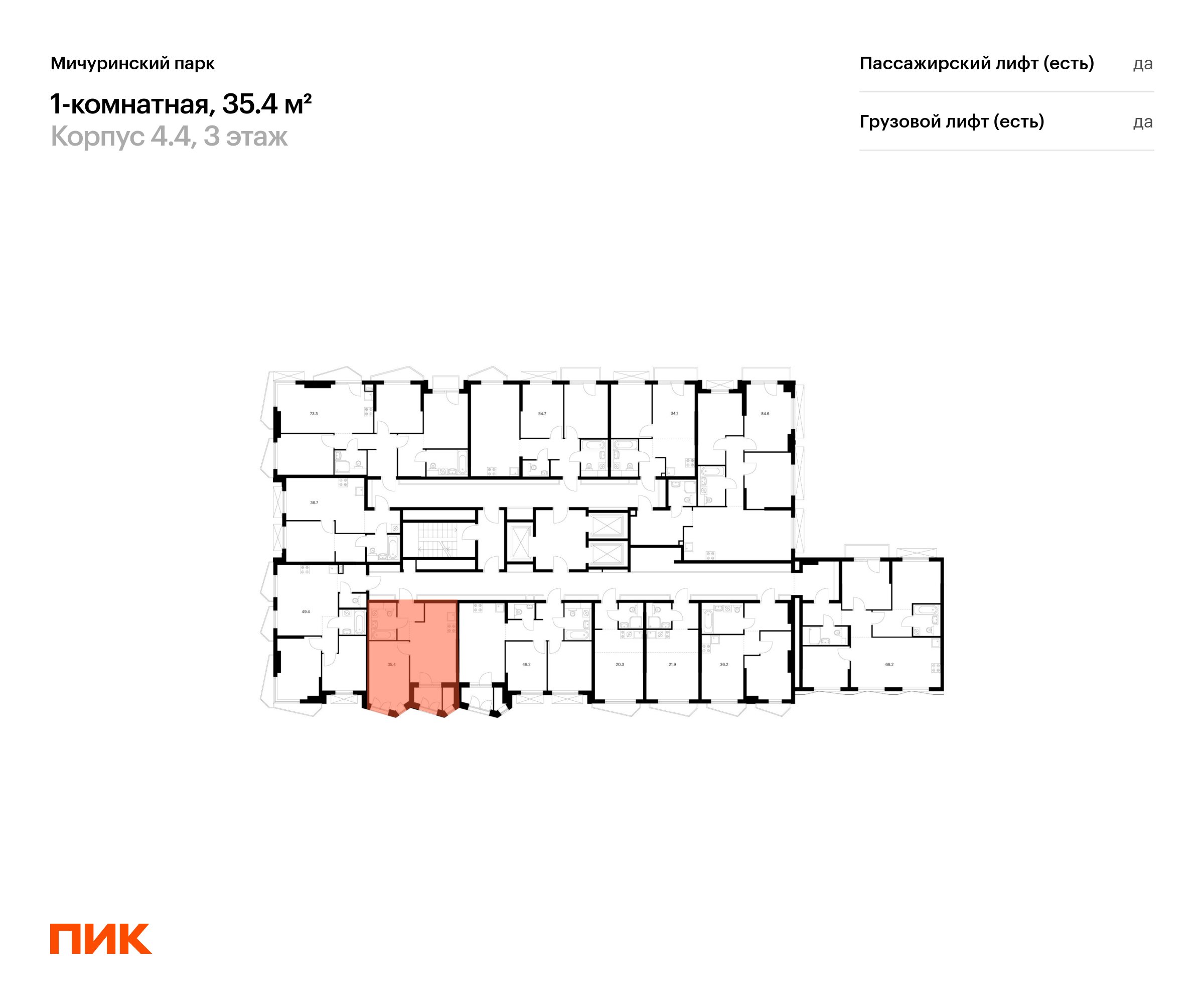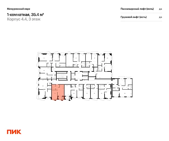 Продаётся 1-комн.квартира площадью 35.40 кв.м на 3 этаже 23 этажного дома (Корпус 4.4, секция 1) проекта ПИК Мичуринский парк. Светлый просторный подъезд на уровне земли, функциональная планировка, большие окна, с отделкой.