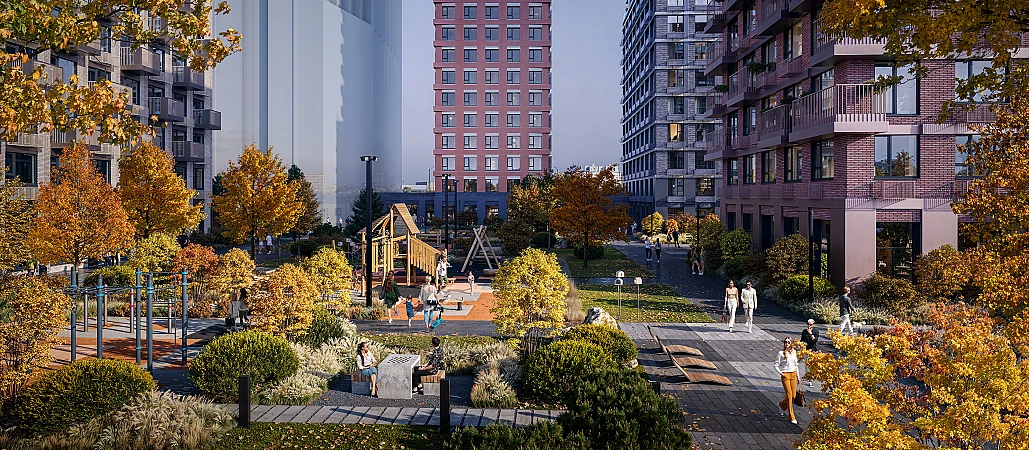 В проект входят монолитные дома, два детских сада и подземный паркинг. На территории будет городская школа. Во дворах мы построим уютные парки с детскими площадками и местами для отдыха. Чуть дальше от домов мы разместим спортивные площадки, чтобы шум от них не мешал жителям. В тихих и быстрых лифтах будут усилители связи, чтобы она не прерывалась и жители продолжали говорить по телефону или проверять соцсети даже перемещаясь между этажами.