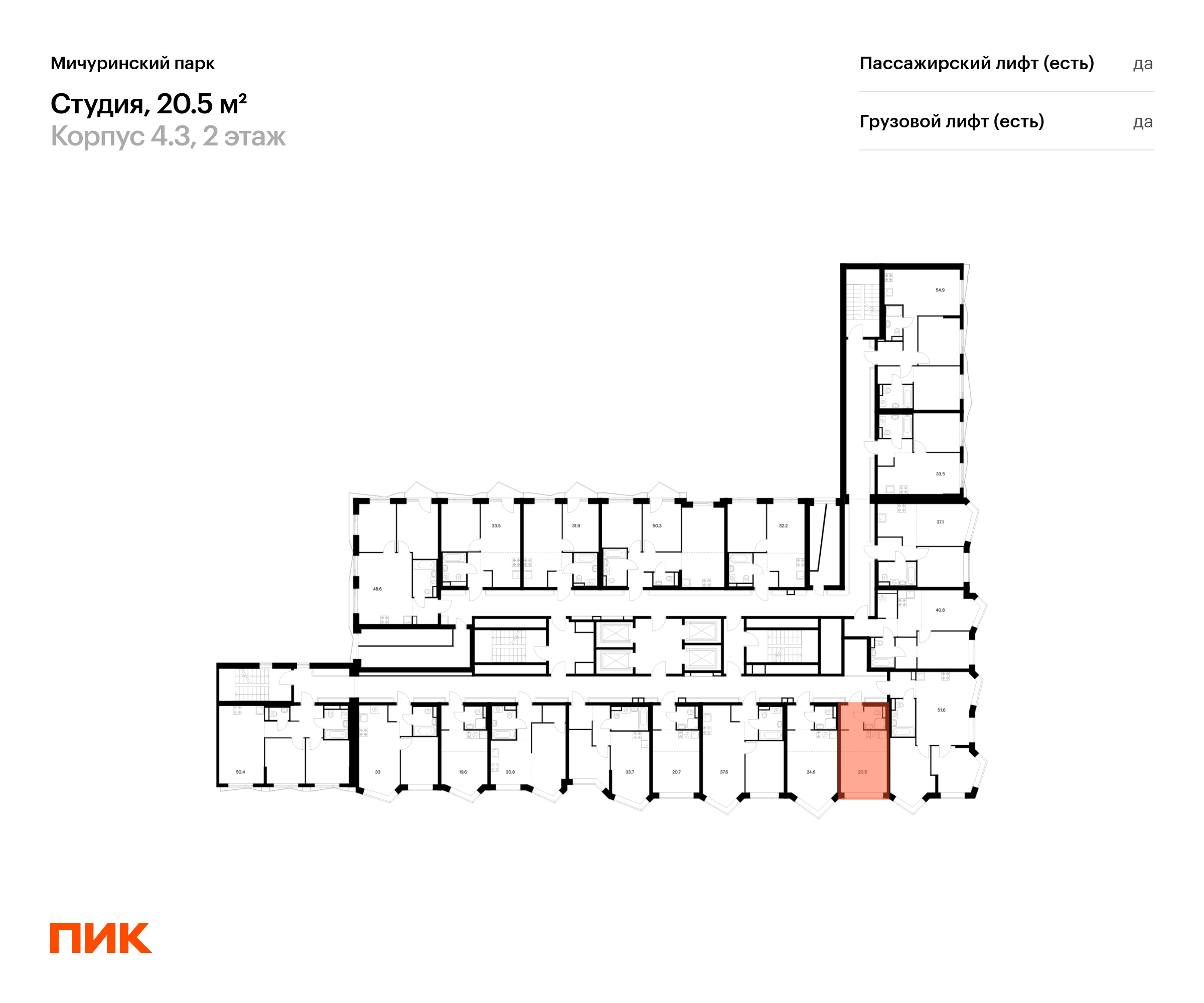 Продаётся квартира-студия площадью 20.50 кв.м на 2 этаже 31 этажного дома (Корпус 4.3, секция 2) проекта ПИК Мичуринский парк. Светлый просторный подъезд на уровне земли, функциональная планировка, большие окна, с отделкой.