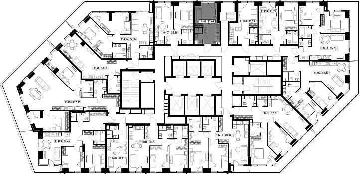 В корпусах 4.2-4.5 открытые балконы разнообразных форм: прямоугольные, фигурные. Все балконы выходят в тихий внутренний двор-парк. В эркерной части обоих корпусов предусмотрены лоджии.