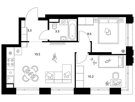 Особенностью проекта стала возможность выбирать и адаптировать планировки квартир под свои нужды. Здесь можно выбрать квартиры с постирочными, гардеробной или спальней с ванной комнатой. А можно выбрать квартиру со сквозным санузлом или планировку семейной квартиры со спальнями в разных сторонах гостиной. Артикул - 746961