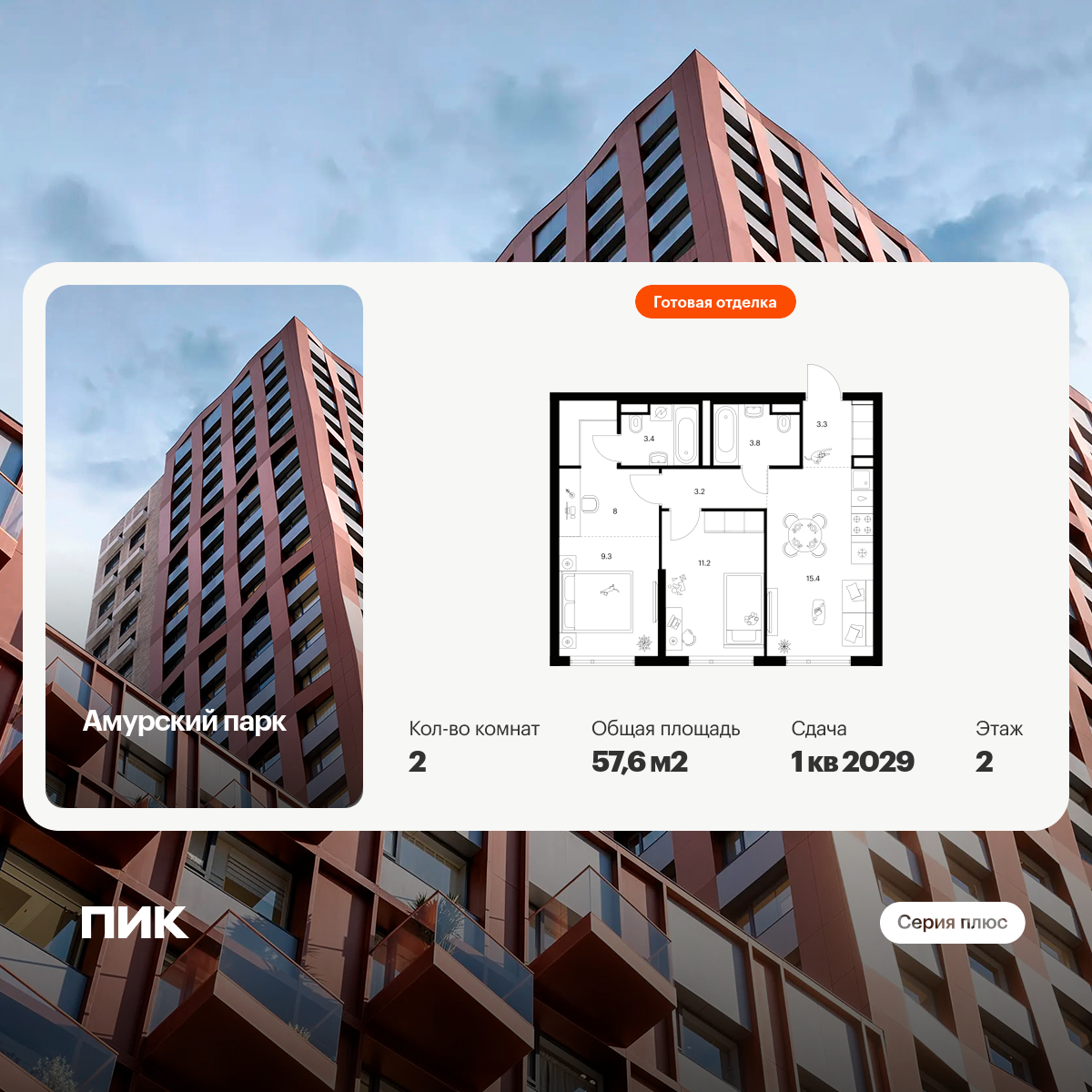В проекте широкий выбор планировок с мастер-спальнями, кухнями-нишами, гардеробными и постирочными. Семьям с детьми понравятся квартиры со спальнями, разнесёнными по разные стороны гостиной. Мы предусмотрели множество вариантов остекления и балконов: есть планировки с панорамными и угловыми окнами, угловыми и классическими балконами. А для тех, кто хочет получить максимум пространства, есть квартиры с потолками до 5,3 метра. Артикул - 971717