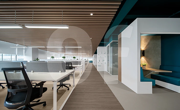 Офис площадью 682 кв.м. представляет собой свободное пространство, позволяющее новому арендатору реализовать индивидуальное планировочное и дизайнерское решение в соответствии с собственными требованиями и корпоративными стандартами.