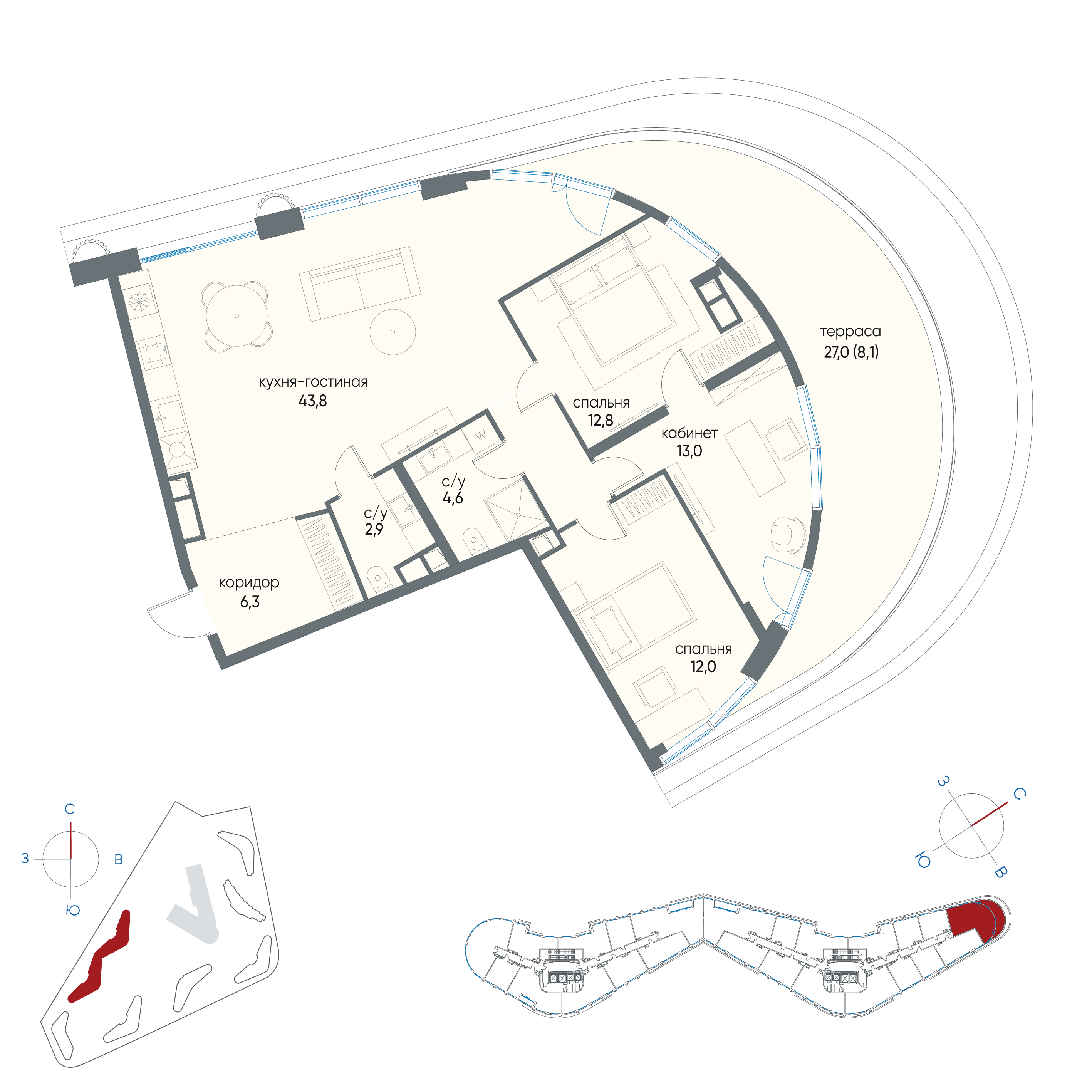 Стоимость квартиры со скидкой 8% при 100% оплате 69552000 руб.