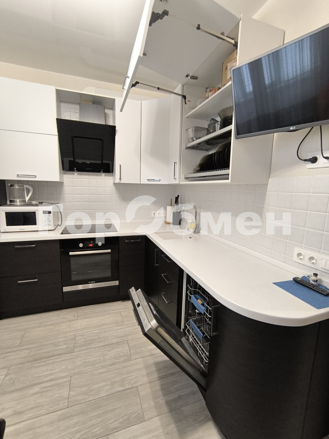 На кухне: варочная панель, духовка, вытяжка, посудомойка, вместительная система хранения. Лоджия утепленная, есть место для хранения шин (см. фото)