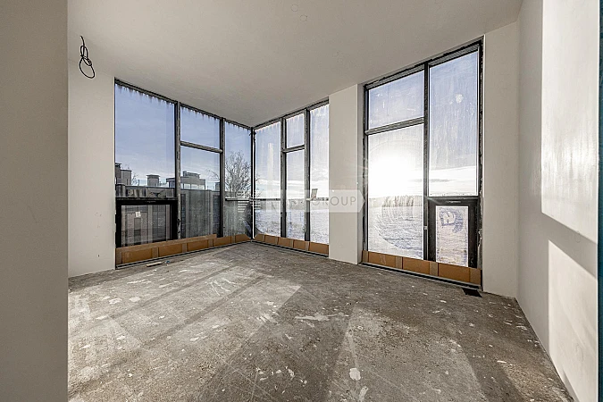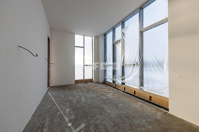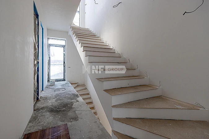 Полностью готовы полы, санузлы, штукатурка, на крыше застекленная терраса. На улице открытый бассейн.