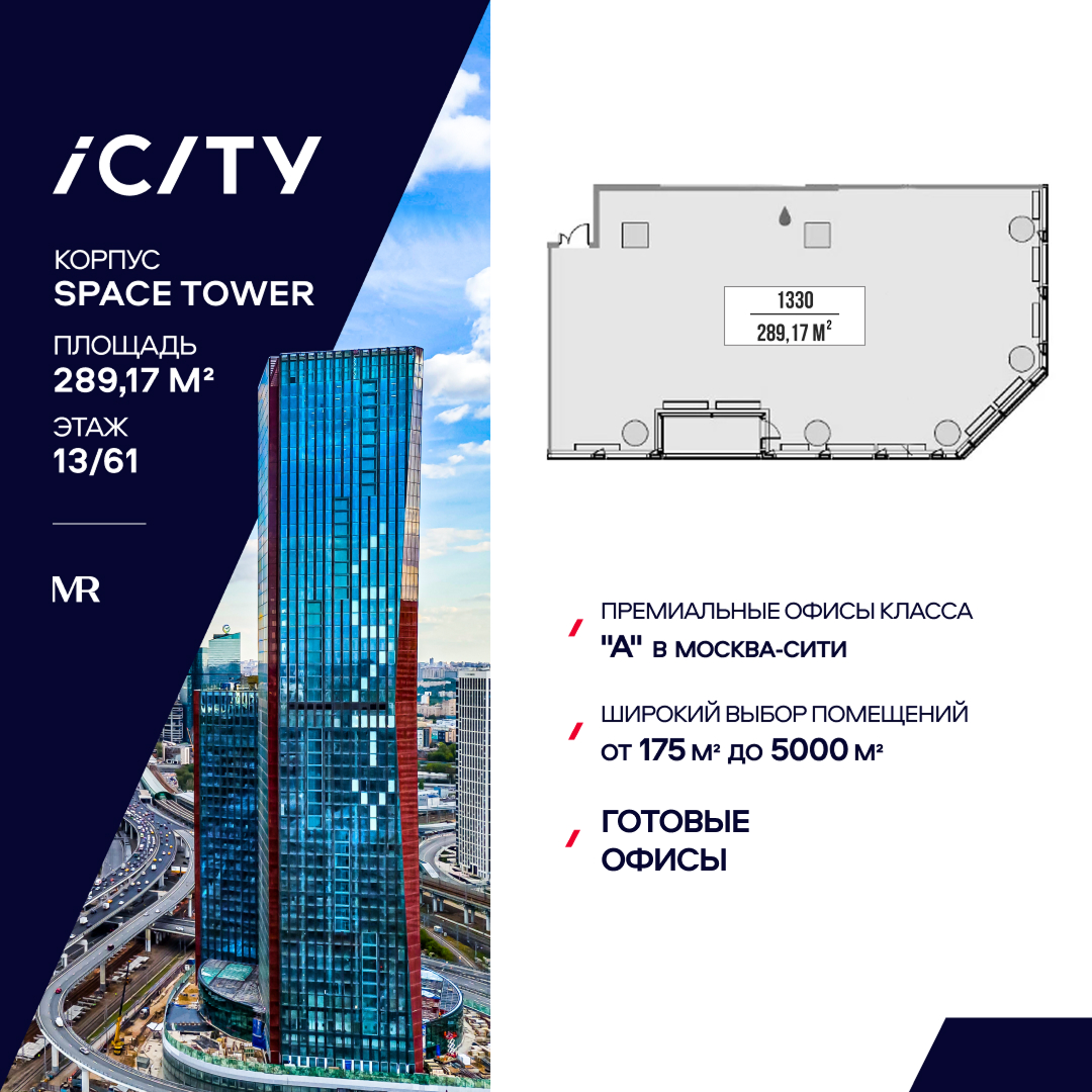 Предлагается офисное помещение, с рассрочкой 0%, площадью 318.46 м2 на 14 этаже в башне ""Space Tower"" деловых небоскребов класса ""А"" iCITY. Расположен в Москва-Сити. Проектом предусмотрена уникальная система проветривания помещений. Свободная планировка. Отделка Shell and Core. Высокие потолки 3,75 м и панорамное остекление обеспечивают отличную инсоляцию.