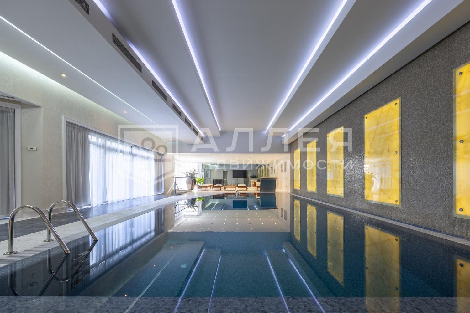 Новый дом с бассейном и лифтом. Сделан новый ремонт. В отделке использованы дорогие натуральные материалы - много мрамора и ценных пород дерева. В гостиной второй свет и дровяной мраморный камин. Установлена техника и сантехника премиальных брендов, водяные теплые полы, канальное кондиционирование и приточно вытяжная вентиляция, панорамное остекление в пол. Есть отдельный блок для персонала, теплый гараж на два авто, постирочная, отдельная рабочая кухня, винная комната и кабинет. Для отдыха: бильярдная, большой бассейн с противотоком, джакузи, сауна и хамам. Дом полностью меблирован дорогой итальянской мебелью и готов к проживанию.