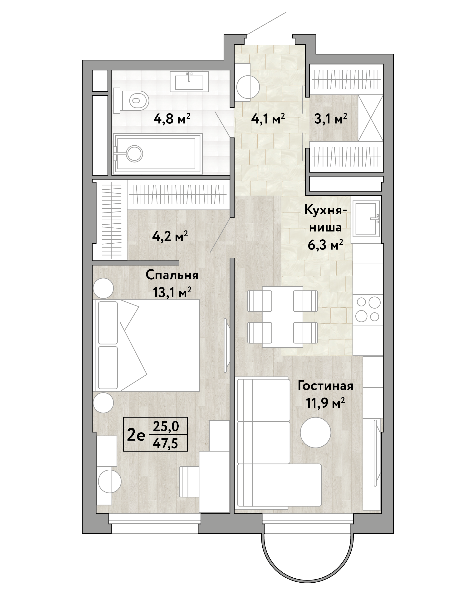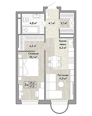 Купить 1к квартиру 47 м² в ЖК Новые Смыслы