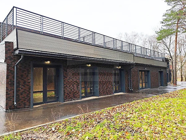 Отделка фасадов выполнена панелями с имитацией клинкерного кирпича. Дополнительно на территории организованы зоны отдыха, имеется возможность для организации летних веранд и кафе.