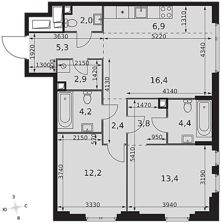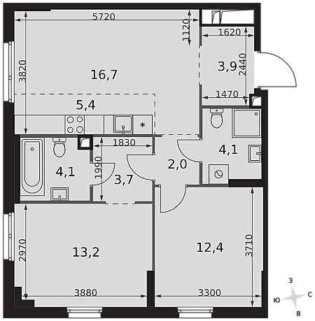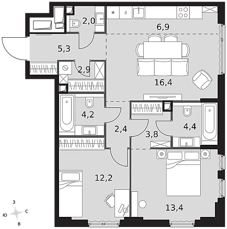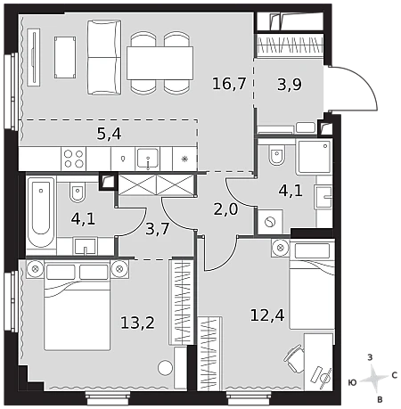 Купить 1к квартиру 56 м² в ЖК hideOUT