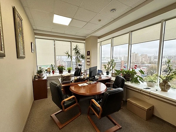 . Офис расположен на 9/м этаже. Общая площадь 251,6м2 (занимает половину этажа), кабинетная планировка, свой с/у и кухня, стандартный офисный ремонт. Есть вип-зона с собственным с/у. В здании приточно-вытяжная вентиляция, сплит-системы кондиционирования.