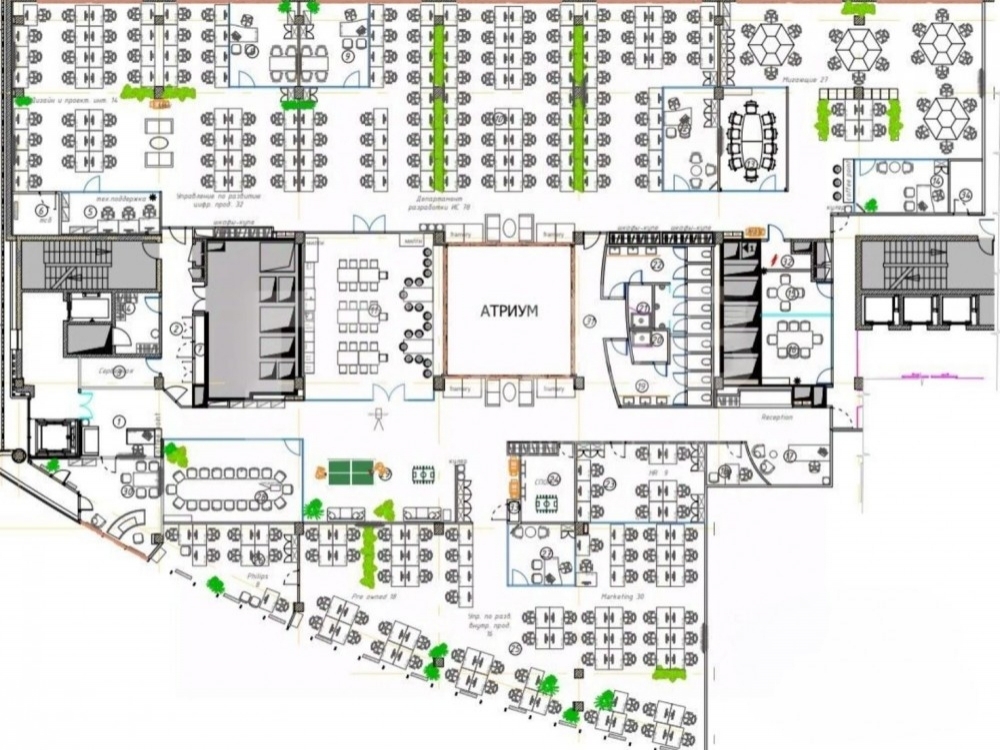 . Третий этаж, много окон, стандартный офисный ремонт, смешанная планировка, приточно-вытяжная вентиляция, кондиционирование, высокие потолки.