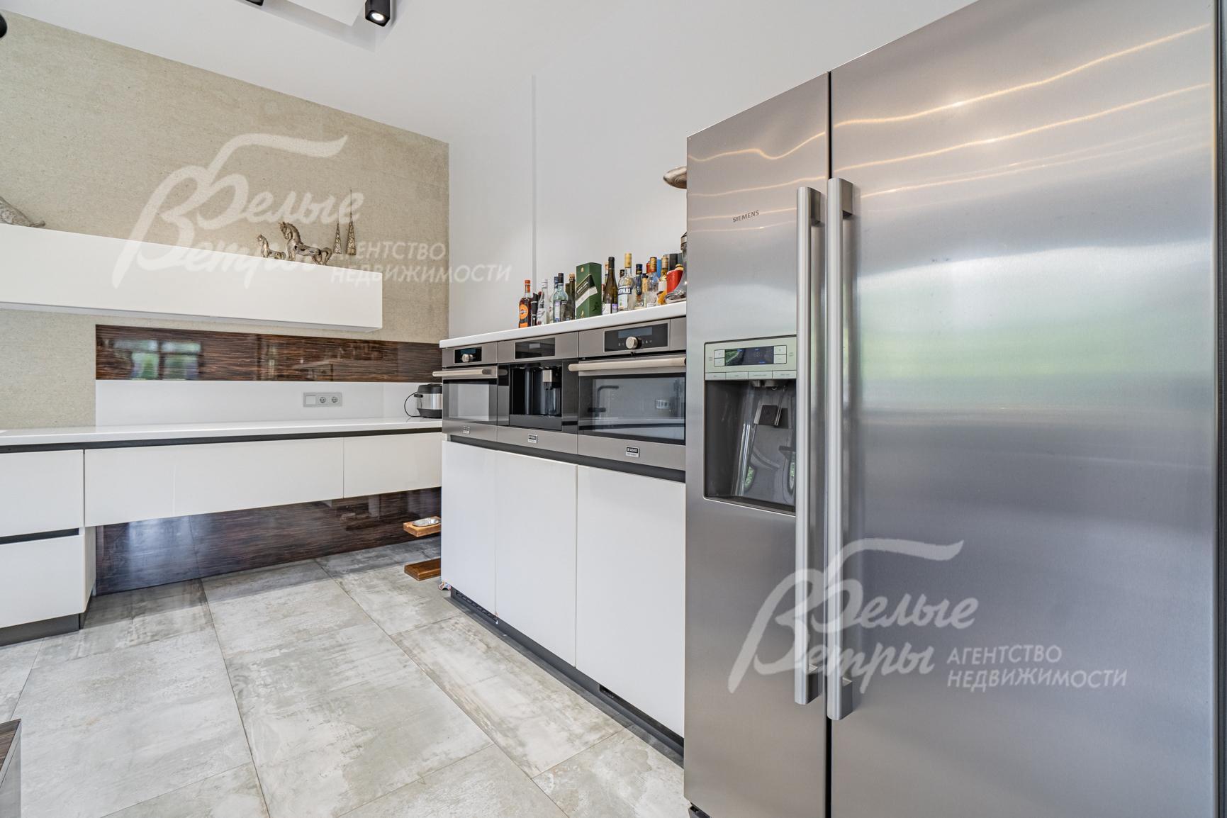 Мебель, оборудование: Всё от лучших производителей. Установлен кухонный гарнитур фирмы Virs со встроенной бытовой техникой: газовая плита Asko, пароварка Asko, микроволновая печь Asko, духовой шкаф Asko, кофемашина Asko, холодильник Siemens (side by side), вытяжка Falmec, посудомойная машина Neff, стиральная машина Asko. Мебель BoConcept (Дания) - кровати, тумбочки, журнальный столик, Natuzzi - кровати в детских, Albert Shtein - диван. Обеденный стол с столешницей из ореха, стулья, кровать в спальне - мебель ручной работы на заказ (пр-во Россия, размеры 220х220см). Мебельный гарнитур в спальне ручной работы, с обивкой дорогой тканью, выполнен на заказ. В гардеробной при спальне установлены 3 шкафа (пр-во Италия) с системами хранения..