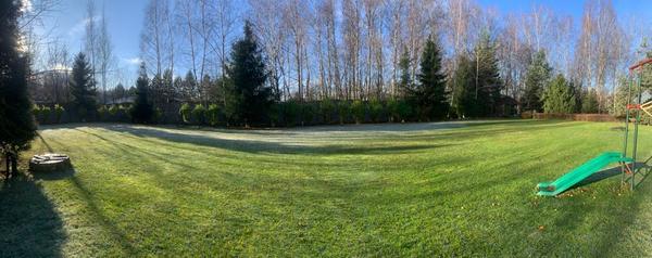 Благоустройство участка: на участке выполнен ландшафтный дизайн в современном стиле по мотивам американского заднего двора. \nСтатус земли: земли населенных пунктов, ИЖС. Высажено около 100 деревьев: туи 67 шт., можжевельник обычный 3 шт., можжевельник степной 3 шт., можжевельник скалистый 4 шт., сосна 8 шт., пихта 4 шт., береза 1 шт., ель 3 шт. Выход с террасы находится на одном уровне с землей (без ступеней). Есть газон, покрытие (дорожки) - декоративные плиты и мраморная крошка, разбиты грядки в современном стиле по английскому типу, теплица. Система полива участка..