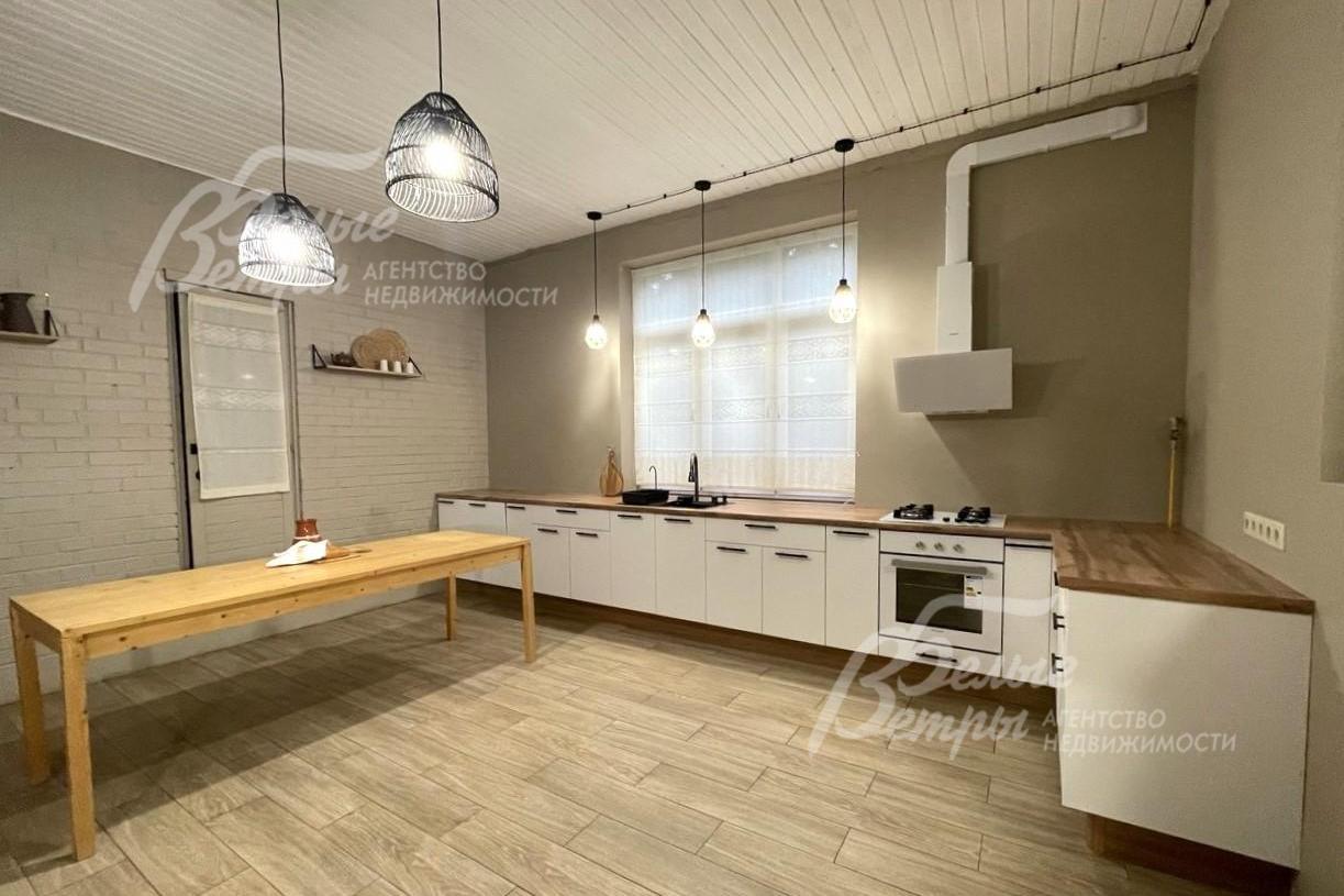 Мебель, оборудование: в доме стильная современная меблировка: в гостиной модульный диван, в мастер-спальне большая кровать с тумбочками, шкаф. В одной из спален две кровати, выполненные на заказ. В жилых комнатах - шкафы для одежды, полки, прикроватные тумбы, журнальный столик, кресла. Недостающая мебель будет куплена под запрос арендатора. Новый современный кухонный гарнитур со встроенной техникой Weissgauff: газовая варочная панель, духовой шкаф, посудомоечная машина, а также вытяжка, двухдверный холодильник Weissgauff - вся техника абсолютно новая. Обеденный стол из массива дерева. На кухне русская печь, на которой можно готовить традиционные блюда. Стиральная и сушильная машина Tuvio, телевизор в гостиной. Во всех помещениях карнизы, шторы, занавески. Дизайнерские светильники и люстры, трековые светильники, картины и прочее. В беседке - уличная мебель (диван, кресла, тумба, журнальный столик)..