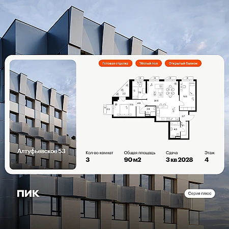 Купить 3к квартиру 90 м² в ЖК Алтуфьевское 53