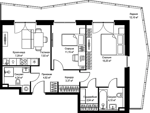 Купить 2к квартиру 75 м² в ЖК Селигер Сити