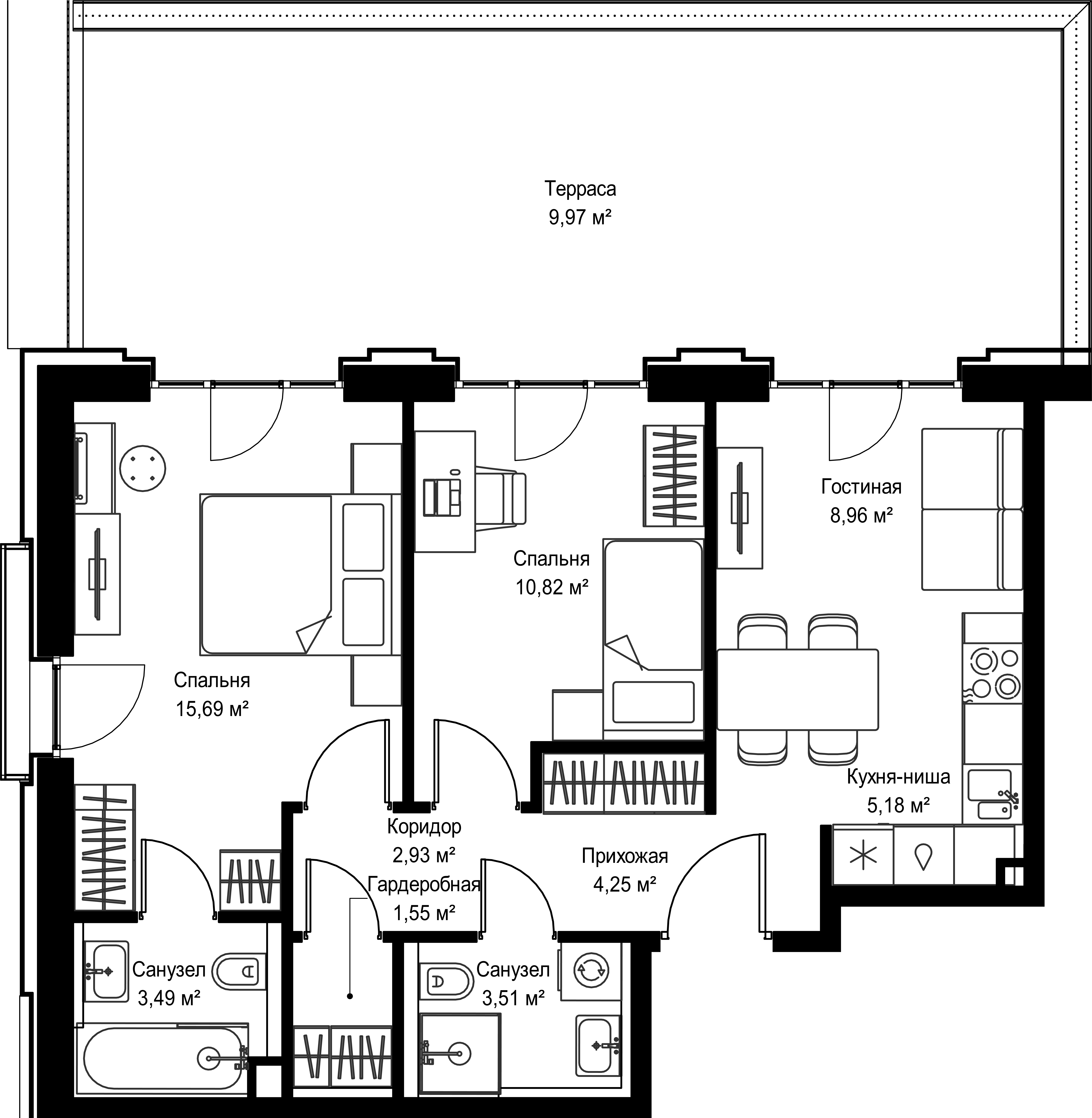 Купить 2к квартиру 69 м² в ЖК Селигер Сити