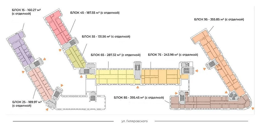 Бизнес-центр расположен в пешей доступности от станции метро Рижская, Марьина роща, Проспект мира. На территории есть наземная парковка. Описание помещения: Офисное помещение с качественной отделкой. Состоит из блоков 356м2, 188м2 и 287 м2.