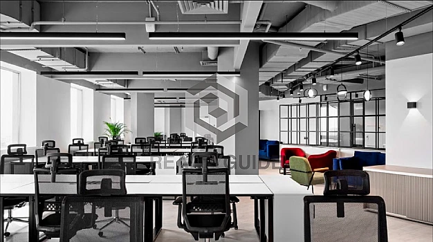 Есть зоны отдыха и кухня, сан. узлы, переговорные комнаты.