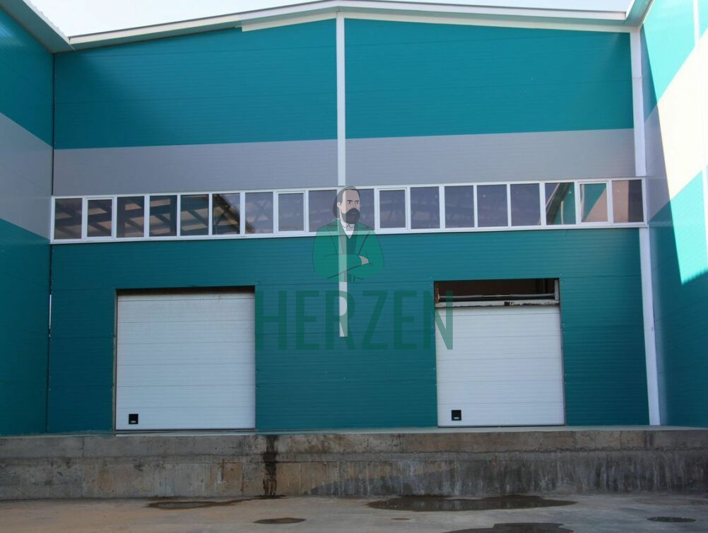 Подъёмно-секционные ворота на пандусе и на нулевом уровне.
