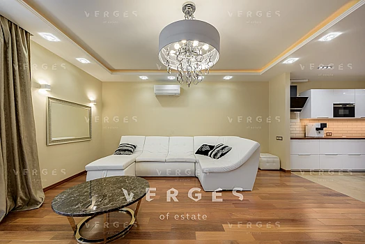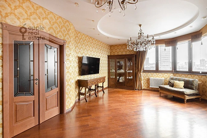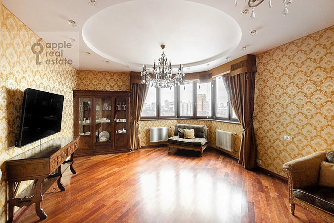 Квартира общей площадью 180 кв. м., включая лоджию и балкон, расположена на 7-ом этаже 24 этажного дома, представлена со всей мебелью и техникой. Потрясающие виды из окон на три стороны. В квартире выполнен дорогой качественный ремонтв классическом стиле: на полу паркет из ценных пород дерева, шелковые обои, деревянные стеклопакеты. Функциональная планировка: просторная гостиная; большая кухня с обеденной зоной; мастер-спальня с собственной ванной комнатой; вторая спальня; кабинет, который при необходимости можно переделать в спальню; гардеробная; гостевой санузел с душевой кабиной; прихожая с гардеробной зоной для хранения верхней одежды.