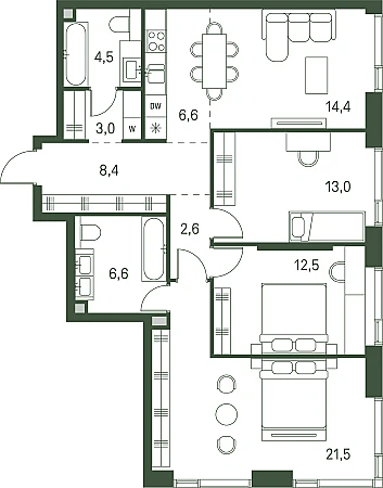 Купить 3к квартиру 93 м² в ЖК Moments (Моментс)