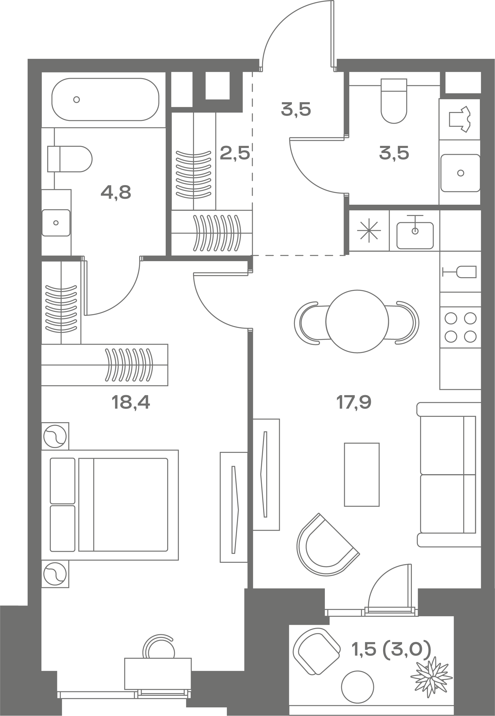 Купить 1к квартиру 52 м² в ЖК Soul (Соул)