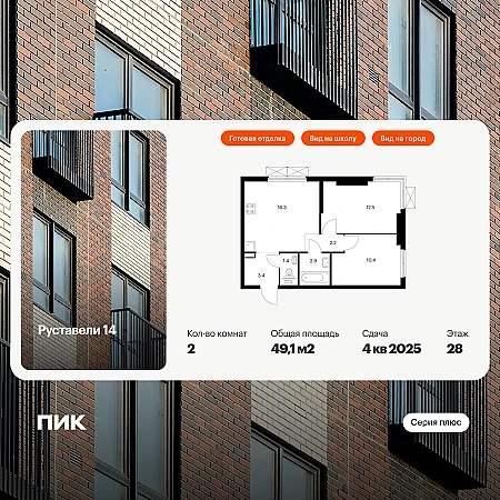 Купить 2к квартиру 49 м² в ЖК Руставели 14