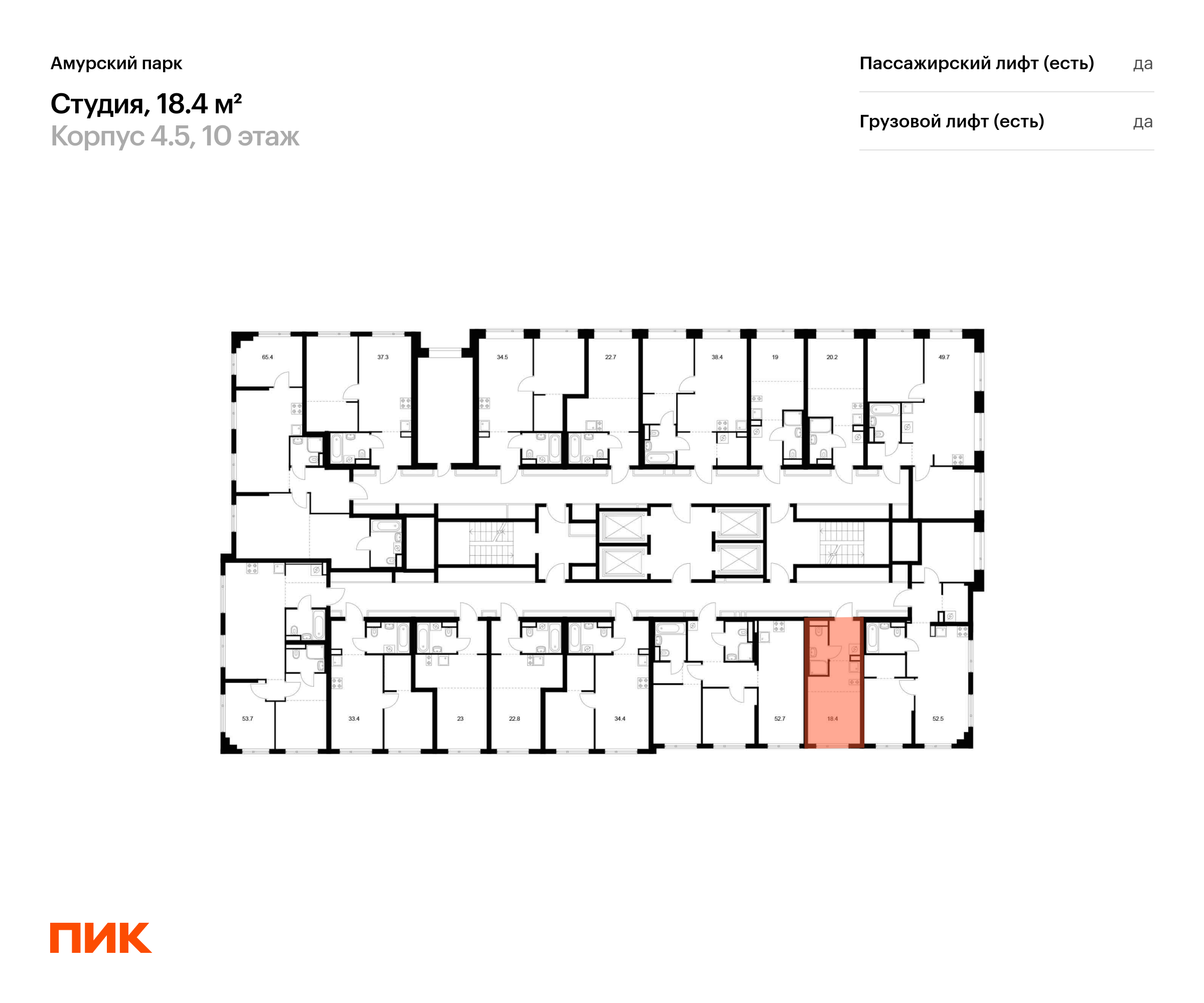 Продаётся квартира-студия площадью 18.40 кв.м на 10 этаже 27 этажного дома (Корпус 4.5, секция 6) проекта ПИК Амурский парк. Светлый просторный подъезд на уровне земли, функциональная планировка, большие окна, с отделкой.