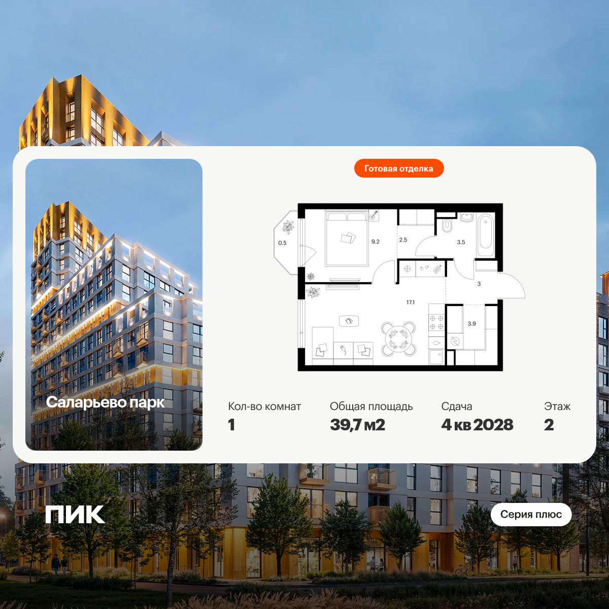 Купить 1к квартиру 41 м² в ЖК Кронштадтский 9