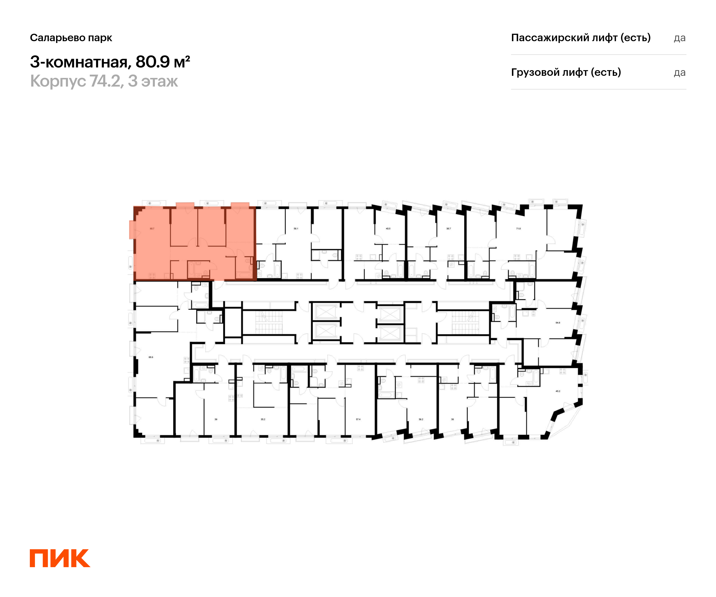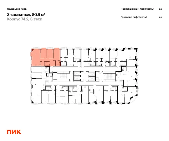 Продаётся 3-комн.квартира площадью 80.90 кв.м на 3 этаже 18 этажного дома (Корпус 74.2, секция 2) проекта ПИК Саларьево парк. Светлый просторный подъезд на уровне земли, функциональная планировка, большие окна, с отделкой.