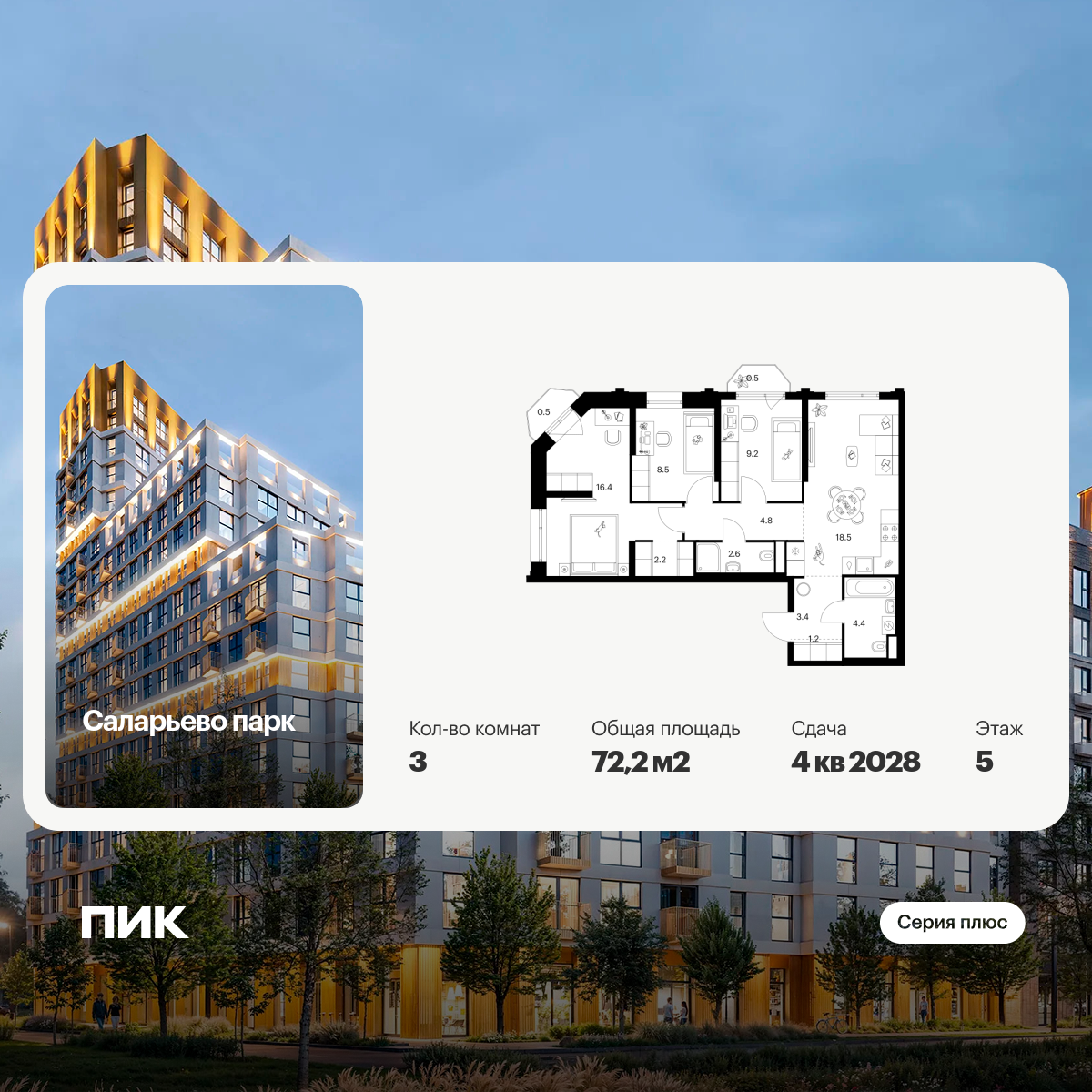 Купить 3к квартиру 67 м² в ЖК Саларьево парк