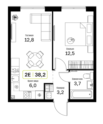 Купить 1к квартиру 38 м² в ЖК Новый Зеленоград