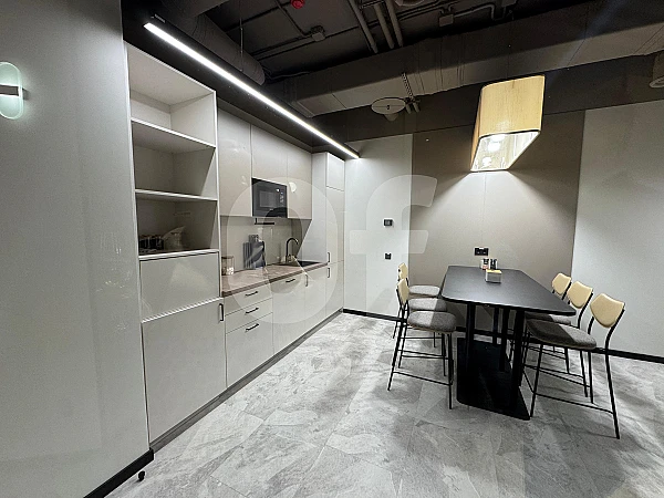 Офис полностью меблирован и сочетает кабинеты руководства, open-space зоны, переговорные комнаты, серверную, мини-кухни, кофе-поинты и санузлы. Этаж с панорамными видами на город и Москва-Сити, готовый к немедленному въезду. Особенности: высокие потолки, панорамное остекление, современный дизайн в стиле лофт и терраса.
