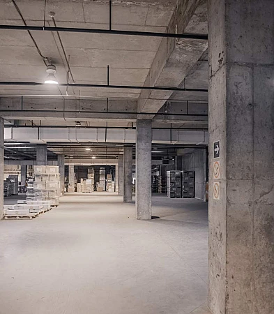 Склад располагается на 2 этаже, высота потолков от 4.2 м, бетонный пол, сетка колонн: 6x9. Также имеются грузовые лифты, грузоподъемность одного лифта 3 тонны. Внутри типовой ремонт, вход в помещение - отдельный с улицы, участок находится в собственности, здание охраняется.
