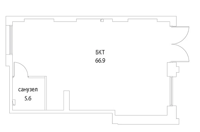 Площадь – 72,5 кв.м, свободного назначения, правильной формы, без колонн.