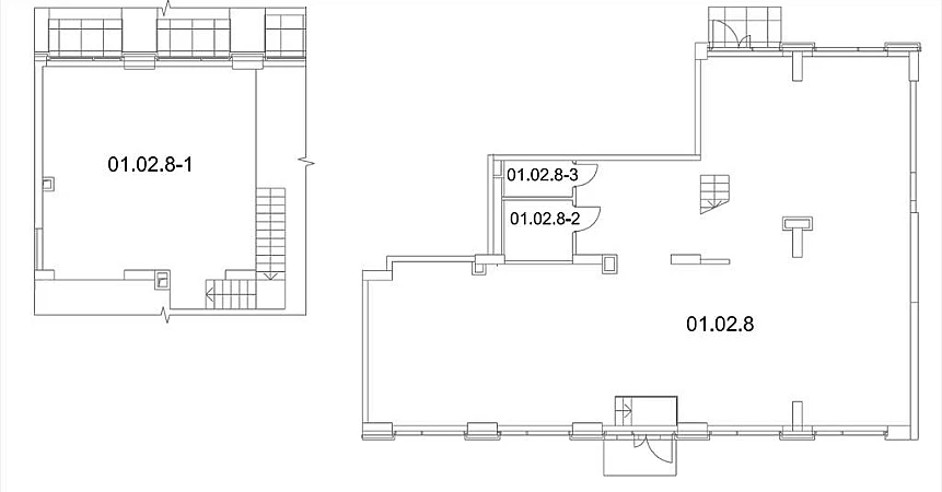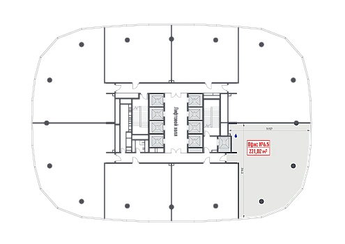 - Вентиляция: на фасаде в пределах 1 этажа предусмотрены места забора воздуха для приточной вентиляции, а для вытяжной вентиляции предусмотрены воздуховоды на кровлю здания. Можно установить оборудование под потолком (забор воздуха с фасада со стороны входа) 3 300 м3/час, выброс воздуха на кровлю или внутренний двор 3220 м3/час.