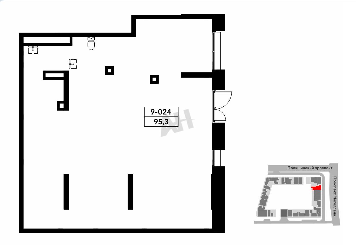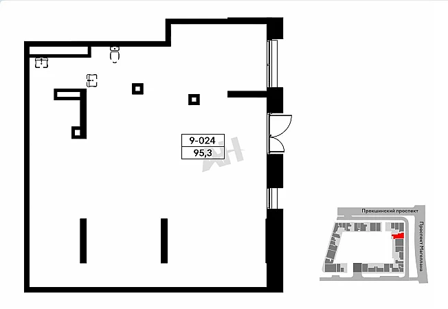 Лот №929344 Предлагается к приобретению коммерческое помещение свободного назначения общей площадью 95,3 м². Высота потолков составляет 5,26 метра. Помещение характеризуется отсутствием отделки и витринного остекления, имеет один вход. Разрешенная мощность электроэнергии — 19,5 кВт, предусмотрены системы вентиляции Ш160 и Ш100.